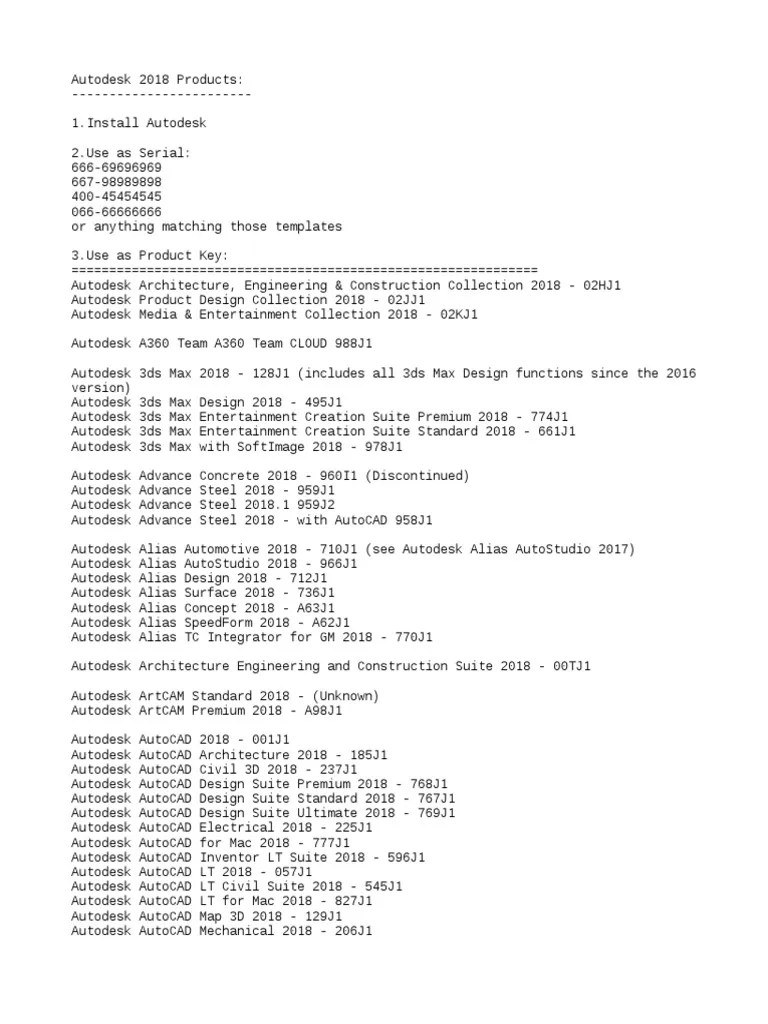 146 rækker · 2018 product keys for autodesk products. Each product in an industry collection has a different product key. When i log into my autodesk account the … 146 rækker · 12.04.2017 · email us at info@microsolresources.com if you need further assistance! If you bought your product as part of a collection, use the lookup tool to find that specific product. I do not have the serial number or product key.. Autodesk 3ds max with softimage 2018.